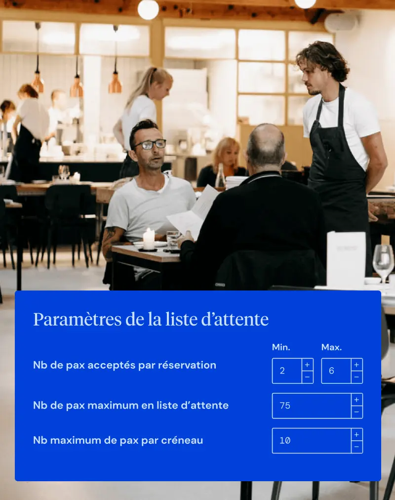 Absolument ! Avec ZenchefOS, vous pouvez personnaliser librement le système de liste d'attente de votre restaurant. Vous avez en effet la possibilité de configurer des paramètres sur mesure, tels que le nombre de personnes autorisées sur la liste d'attente pendant des plages horaires spécifiques. Cela vous permet d'optimiser l'occupation de vos tables sans trop vous engager.