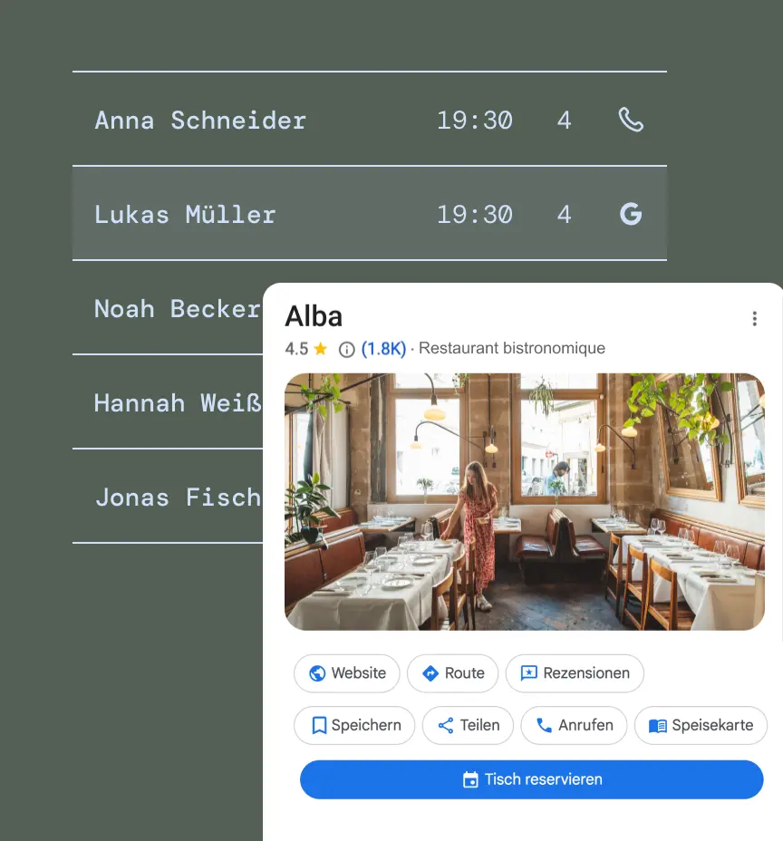 Optimieren Sie Ihre Reservierungen, indem Sie Ihr Telefon direkt mit Ihrem Reservierungssystem verknüpfen. So erhalten Sie automatisch die Kontaktdaten der Gäste, wenn diese im Restaurant anrufen.