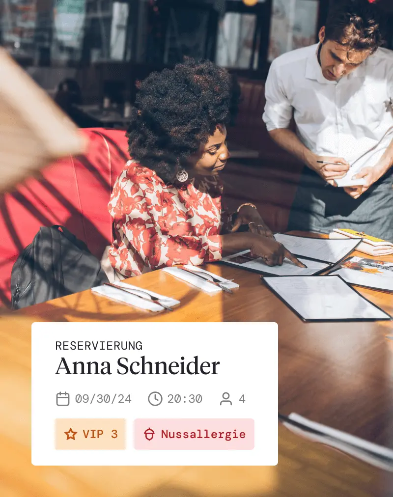 Je mehr Daten Sie zu Ihren Gästen haben, desto reibungsloser der Restaurantbetrieb. Identifizieren Sie Stammkunden, notieren Sie sich ihre Vorlieben und Lebensmittelallergien und erkennen Sie mithilfe von Gäste-Tags online wie offline individuelle Bedürfnisse.