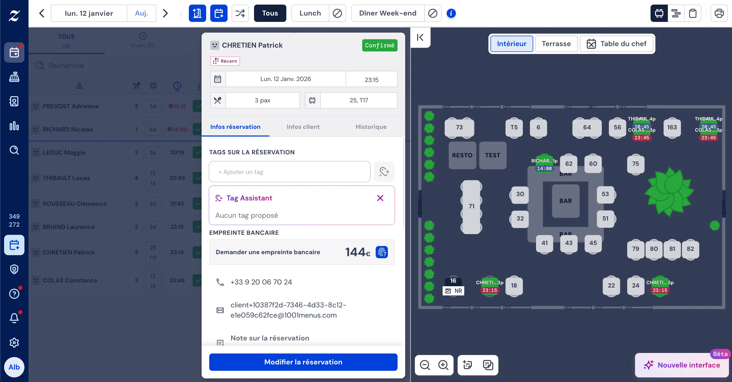 Optez pour la vue qui correspond à votre façon de travailler : plan de salle, frise chronologique ou liste de réservations. Gérez vos tables avec flexibilité et optimisez votre remplissage.